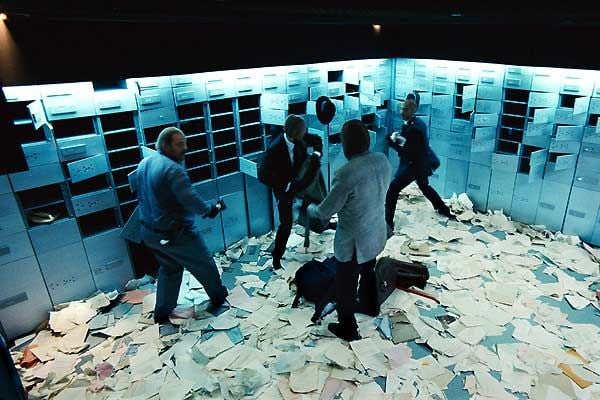 Après un braquage dans une banque, et la police s’approchant, les gangsters se réfugient en traversant la place dans une banque proche de la première.