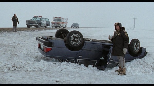 Les frères Coen jouent avec des personnages qui ont de larges lacunes intellectuelles au milieu d’un froid glacial et d’une neige omniprésente où le rouge du sang n’en ressort que mieux.