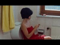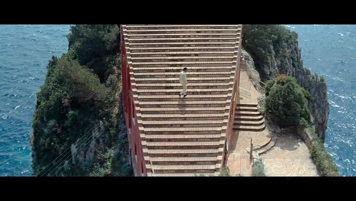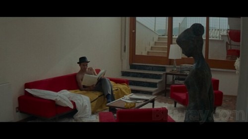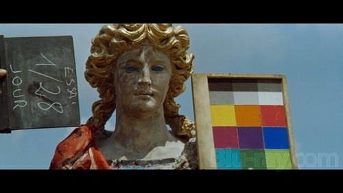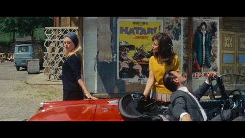 Jean-Luc Godard ne filme pas Cinecittà mais les abords miteux de Cinecittà, il installe son couple dans un appartement inachevé. Il nous emmeène dans une salle de cinéma où l’on ne voit pas de film, puis nous transporte dans la villa Malaparte à la peinture décatie, et le tout finit dans un accident automobile très stylisé, très symétrique et très improbable.