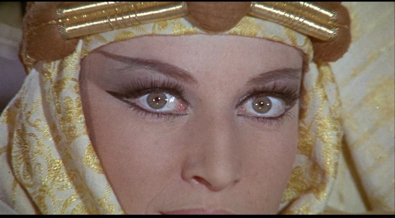 Modesty Blaise passe en un clignement d’œil (et ce n’est pas qu’une expression) de blonde en tenue de ville en brune en tenue d’amazone… Etrange et déroutant. On aurait aimé que cela fut mieux amené.