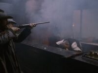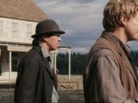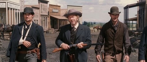 Boss et Charley, avant le carnage qui les attend, se donnent leur dernières recommandations, et échangent leurs dernières confidences. abrités par un chariot. Belle scène d’amitié masculine.