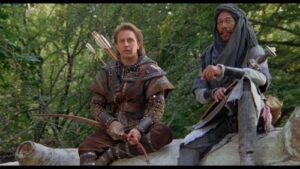 Voici un Robin de Luxley beaucoup plus terne que celui d’Errol Flynn. Par chance le scénario l’affuble d’un maure. Par chance ce maure est joué par Morgan Freeman. Par chance encore les méchants sont un quatuor : L’évèque, le cousin du shérif de Nottingham, une sorcière et (last but not least) le shérif de Nottingham.