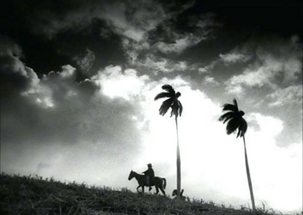 Après l’orage un vieux paysan monte sur son cheval décharné et se rend sur son champ de canne à sucre pour lui parler. Images dignes des plus grands westerns hollywoodiens.